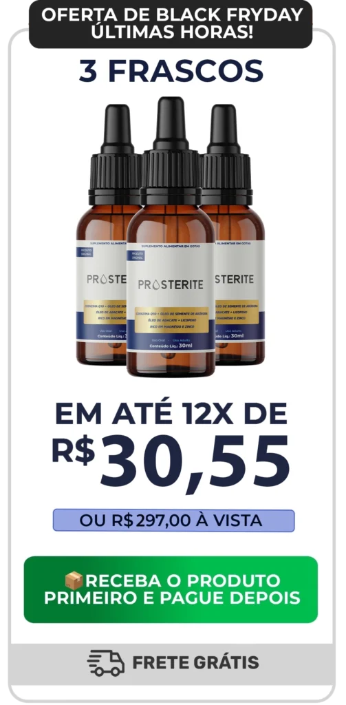 Prosterite apresenta fórmula natural e não apresenta efeitos colaterais. O produto é indicado para homens acima dos 30 anos com sintomas de ргóstаtа ou que deseja prevenir o câncer de ргóstаtа